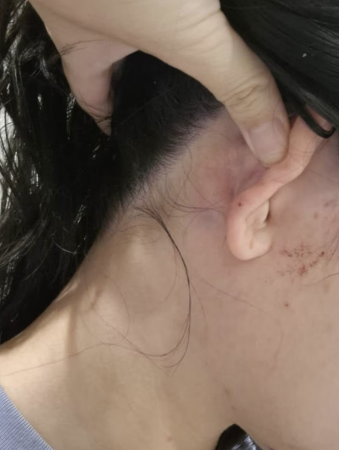 张女士称,这名小孩的母亲从其背后靠近,并抢走她正在录像的手机,从而引发了肢体冲突。“她一直在打我,我想是她的指甲抓伤了我,结果我脸上有一道5毫米的伤口,手臂上也有淤青,我的左耳在流血,包括耳洞那里,鼻子也在流血。”